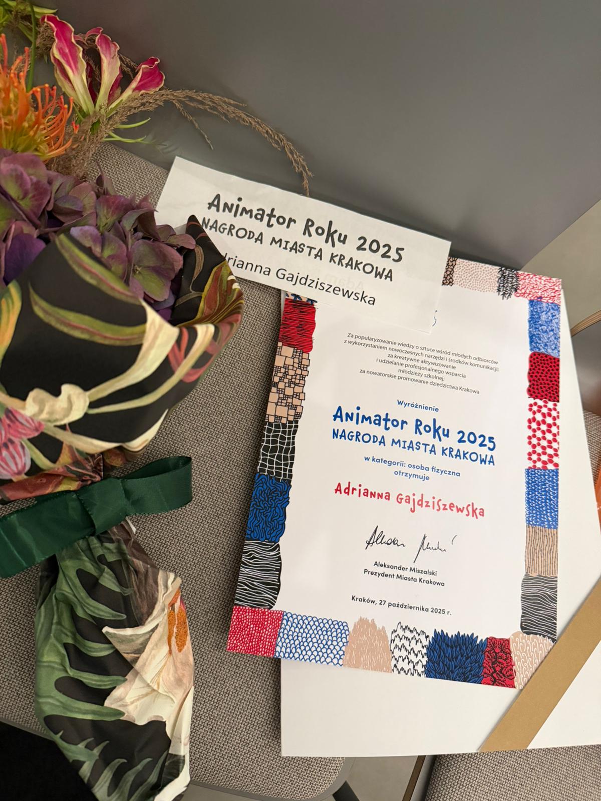 Miło nam poinformować, że Adrianna Gajdziszewska, prowadząca u nas zajęcia HISTORIA SZTUKI DLA MATURZYSTÓW, została wyróżniona w konkursie o nagrodę Miasta Krakowa „Animator Roku”. Jesteśmy dumni i gratulujemy!