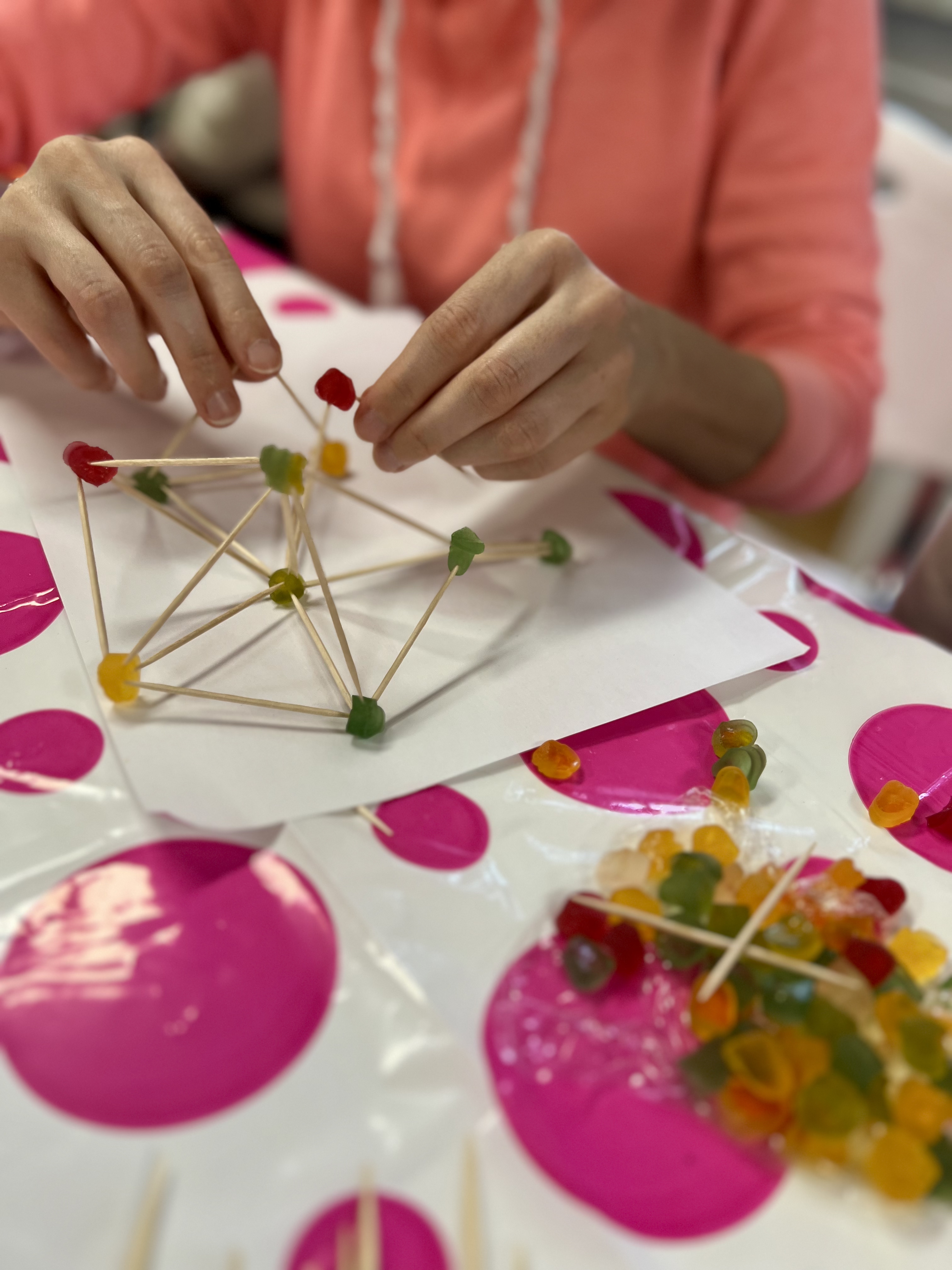 Czas kolejnej, drugiej soboty (22.11) upłynął nam pod hasłem warsztatów konstrukcyjno-architektonicznych. Dzieci i rodzice mogli popracować z własną wyobraźnią przestrzenną, jednak z innej ciekawej perspektywy – tworzyliśmy budowle z żelków i patyczków. Zwieńczeniem był seans filmu animowanego „Felek i Tola ratują las”.