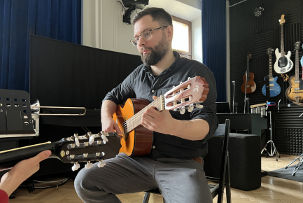 zajęcia obejmują naukę gry na gitarze klasycznej - także od podstaw. Gra na gitarze pozwala rozwijać umiejętności muzyczne oraz manualne. Ćwiczenia skupiają się na doskonaleniu techniki gry oraz poprawianiu wyczucia rytmu. Uczestnicy uczą się również gry z tabulatur gitarowych. Dzięki zróżnicowanemu repertuarowi każdy znajdzie coś dla siebie.